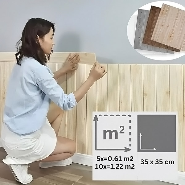 5 x Samoprzylepnych Paneli z Wzorem Drewna 3D (35 cm x 35 cm każdy)