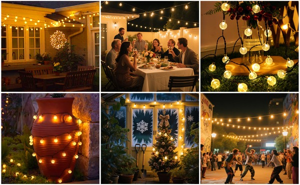 Świętuj swoje specjalne wydarzenia – wesela, pikniki lub uroczystości bożonarodzeniowe z trwałą elegancją. Lampy sznurkowe SOLSTICE i panele słoneczne są wodoodporne (IP44) i mogą być używane wewnątrz i na zewnątrz bez obawy o uszkodzenie przez warunki atmosferyczne.
