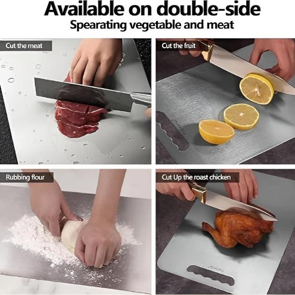 Posiłki dla Twojej Rodziny Tradycyjne deski do krojenia mogą gromadzić szkodliwe chemikalia, takie jak BPA i ftalany, które przenikają do żywności. VITABOARD jest wykonana z czystej stali nierdzewnej, całkowicie eliminując te zagrożenia dla zdrowia. Zapewnij swojej rodzinie spokój ducha przy każdym posiłku.