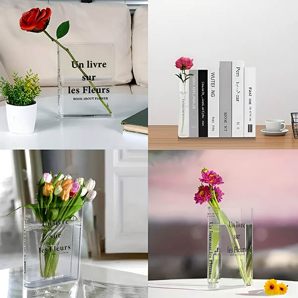 Wykonany z materiału ABS o grubości 3 mm, wazon naśladuje wygląd szkła, oferując jednocześnie zwiększoną trwałość i odporność na stłuczenia. Gwarantuje to, że wazon w kształcie książki pozostanie piękny i funkcjonalny przez wiele lat.