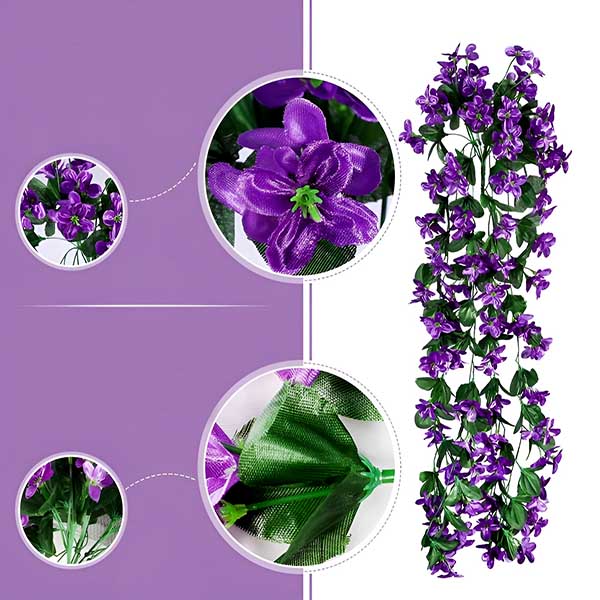 Wnieś odrobinę elegancji do każdej przestrzeni dzięki naszym realistycznym sztucznym wiszącym kwiatom. Wykonane z wykwintnej tkaniny przypominającej jedwab i wysokiej jakości tworzywa sztucznego, te wiszące kwiaty dodają naturalnego uroku Twojemu otoczeniu.