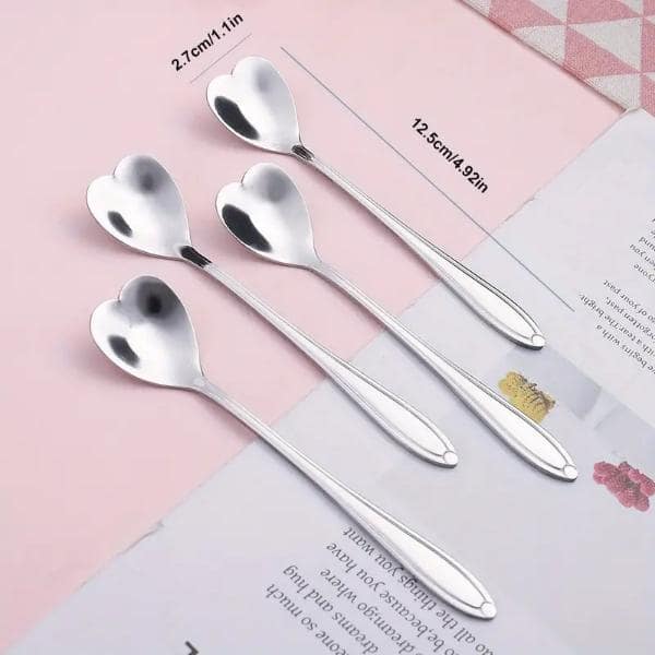 Dodaj odrobinę miłości do swoich posiłków dzięki tym 4 łyżeczkom w kształcie serca, idealnym do nadania potrawom odrobiny słodyczy.