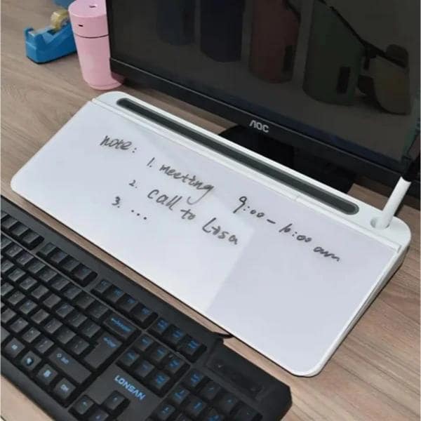 Masz możliwość pisania, zmazywania i ponownego pisania na tablicy, eliminując konieczność stosowania karteczek samoprzylepnych i rozrzuconych notatek na stole.