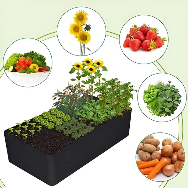 Ta podniesiona grządka ogrodowa z tkaniny ma konstrukcję z 8 siatkami o wymiarach 120 x 62 cm i wysokości 30 cm.