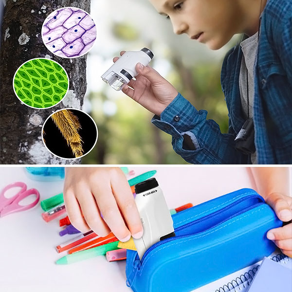 Ten przenośny mikroskop rozwija umiejętności obserwacji, koncentracji i rozwiązywania problemów. Zamienia naukę w zabawę, czyniąc z niego ekscytujący i edukacyjny prezent, który pobudza ciekawość.