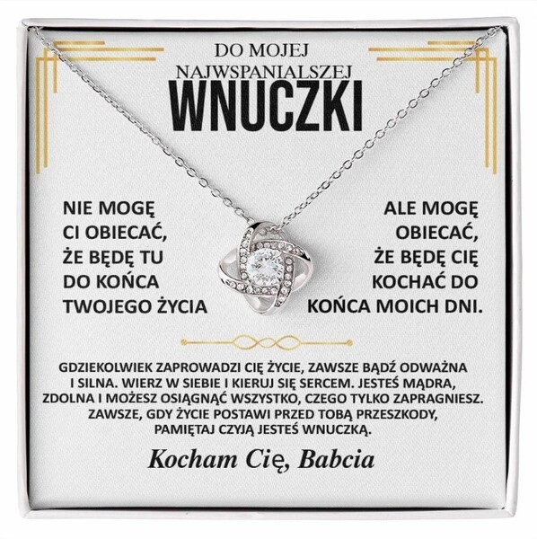 Wyjątkowa kartka z przesłaniem: Nie mogę Ci obiecać, że będę tu do końca Twojego życia, ale mogę obiecać, że będę Cię kochać do końca moich dni. Gdziekolwiek zaprowadzi Cię życie, zawsze bądź odważna i silna. Wierz w siebie i kieruj się sercem. Jesteś mądra, zdolna i możesz osiągnąć wszystko, czego tylko zapragniesz. Zawsze, gdy życie postawi przed Tobą przeszkody, pamiętaj czyją jesteś wnuczką.