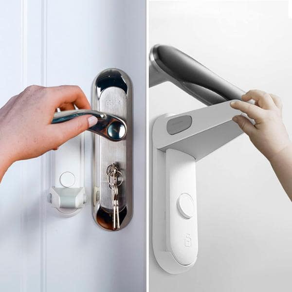 Szybkie mocowanie pod klamką dzięki samoprzylepnej konstrukcji.