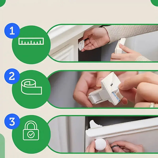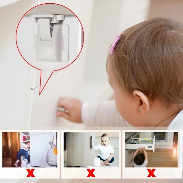 Zabezpiecz swoje dziecko przed urazami lub wypadkami, instalując MAGCLASP na szufladach i szafkach, zwłaszcza tych zawierających ostre przedmioty, chemikalia lub inne niebezpieczne rzeczy. Dzięki silnemu systemowi blokującemu zapewnia, że ciekawskie małe palce pozostaną z dala od niebezpieczeństwa, zapewniając ci spokój ducha.